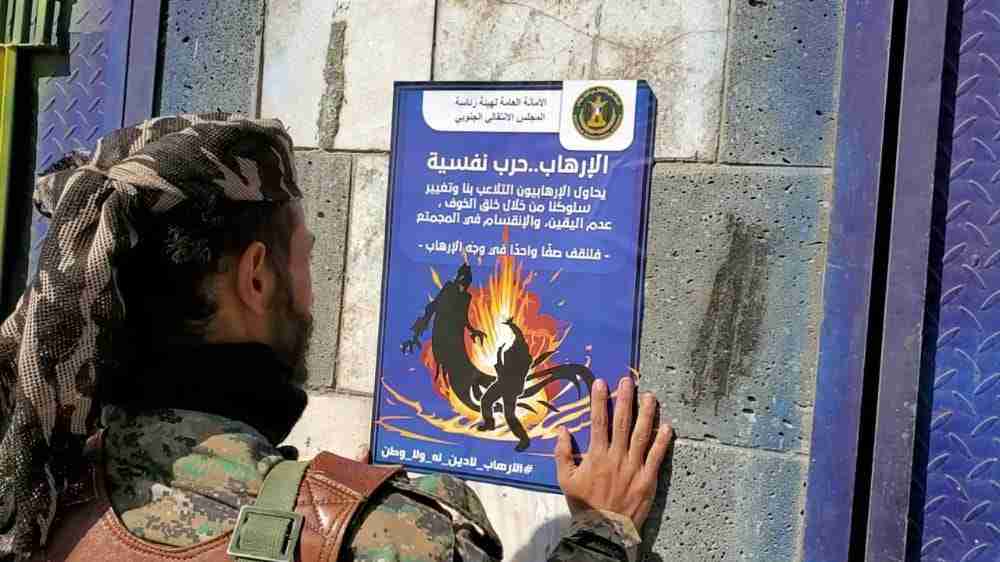 وأوضح الشيخ " لطفي" إلى أن هذه الحملة التوعوية تأتي ضمن برنامج الأمانة العامة لهيئة رئاسة المجلس الانتقالي الجنوبي لتوعية الأفراد بمخاطر الإرهاب والأفكار المتطرفة في جميع محافظات الجنوب تحت عنوان الإرهاب لا دين له ولا طن
