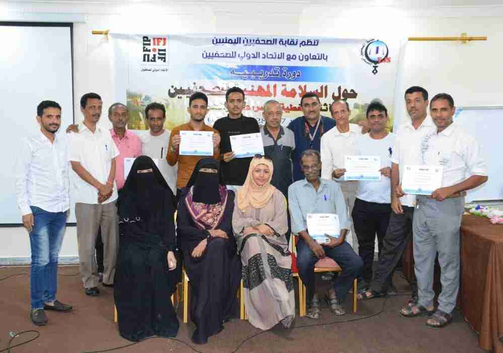 اختتمت نقابة الصحفين اليمنين ، والاتحاد الدولي للصحفيين ، اليوم في العاصمة عدن ، فعاليات الدورة التدريبية الخاصة بالسلامة المهنية للصحفيين أثناء تغطية الصراعات و الحروب، التي استمرت يومين .