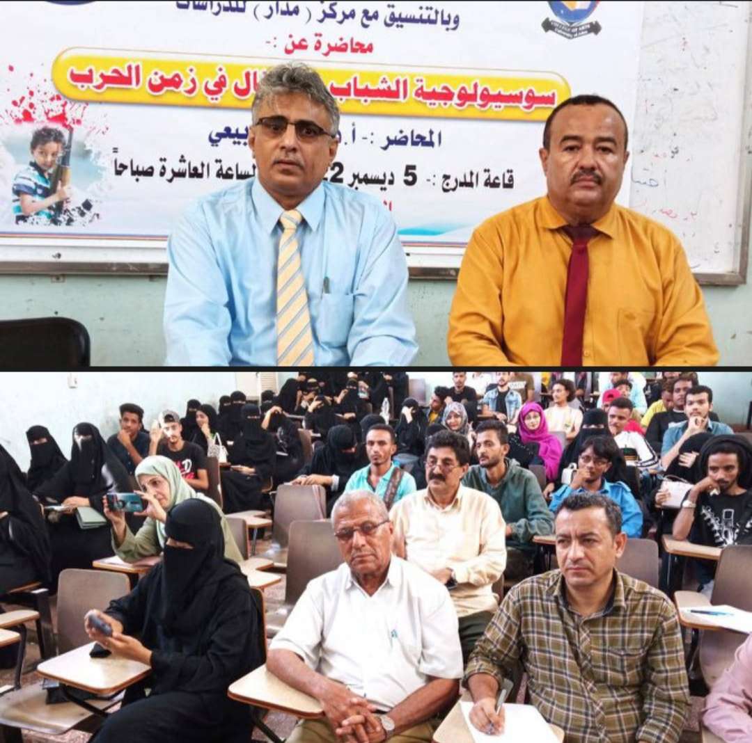 وقال الدكتور فضل الربيعي نائب عميد كلية الآداب بجامعة عدن بمحاضرة ألقاها اليوم الاثنين (5 ديسمبر2022م)، بعنوان (سوسيولوجية الشباب والأطفال في زمن الحرب)، واقيمت برعاية الدكتور الخضر لصور رئيس جامعة عدن، وتنظيم كلية الآداب بالتنسيق مع مركز مدار للدراسات، بحضور ومشاركة الدكتور/جمال الحسني عميد كلية الآداب، قال: أننا نمر بثمان سنوات عجاف منذ الحرب التي فجرها الحوثي وحتى الان، والبلاد تمر بأوضاع سيئة، كان أكثر الفئات التي عانت من وبالها الوخيم هم الأطفال والشباب، من حيث اعداد القتلى أو المصابين أو المعاناة من الفقر والحرمان من التعليم والاستقرار والأمن ومن فقدان طموحات المستقبل المنشود.