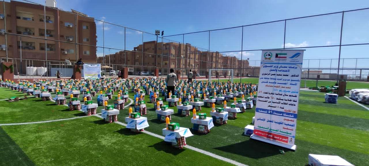 دشنت مؤسسة الجبل التنموية اليوم، توزيع السلال الغذائية لعدد (59) شقة طلابية تستهدف (650) طالب وطالبة وذلك بتمويل من الجمعية الكويتية للعمل الإنساني.