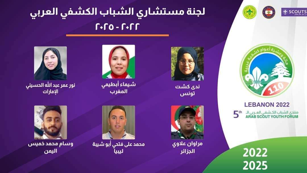 وتمت الانتخابات على هامش فعاليات المنتدى الكشفي العربي الخامس للشباب حيث فاز 6 من الشباب بعضوية لجنة مستشار الشباب الكشفي العربي من بين عدد ( 8 ) مترشحين وباسلوب ديمقراطى باستخدام نظام التصويت الالكترونى المعتمد للمنظمة الكشفية العالمية وذلك للدورة من 2022 الى2025.