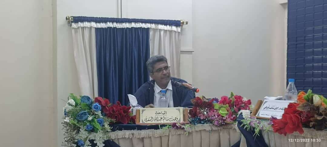 وجرت المناقشة العلنية للأطروحة المقدمة من الباحث وهيب سالم عبدالله السعدي في قاعة الدراسات العليا في كلية الآداب جامعة عدن.