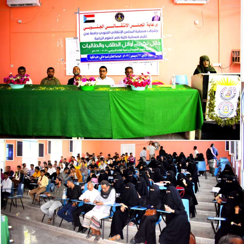 برعاية الانتقالي.. منسقية الانتقالي جامعة عدن تكرم أوائل طلاب كلية ناصر الزراعية بلحج
