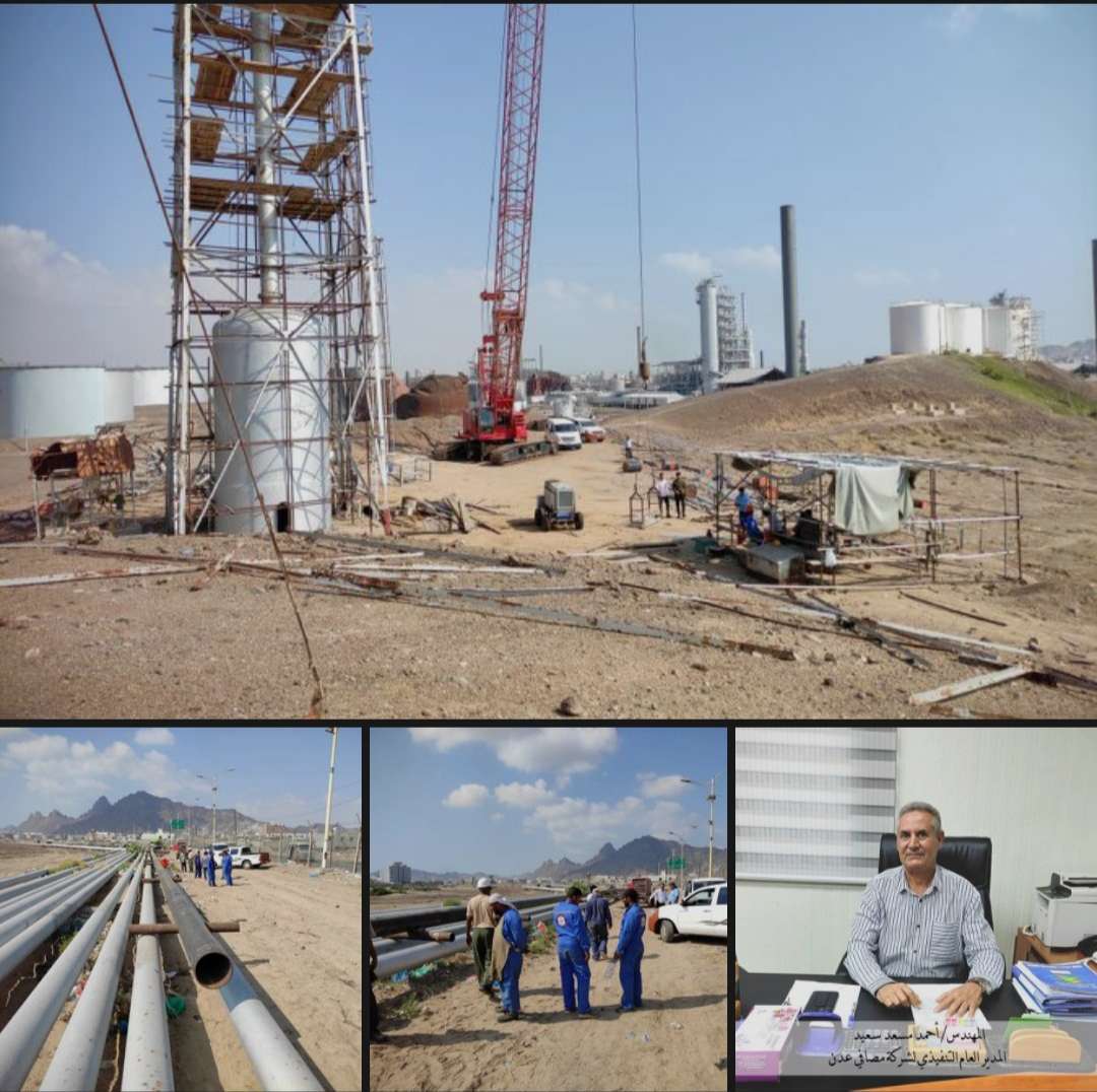 وقال المدير العام التنفيذي لشركة مصافي عدن المهندس أحمد مسعد سعيد، بالإمكانيات البسيطة المتوفرة نسعى لعمل ما نستطيع عمله خلال الفترة الحالية، ومن ضمن المشاريع مشروع تجديد الأنابيب من ميناء الزيت إلى المصفاة فقد بدأ منذ شهر بتمويل ذاتي من الشركة العمل بمشروع استبدال أنبوب البنزين ويليه أنبوب المشتقات الأخرى بطول خمسة إلى ستة كيلو متر وبتكلفة مليون دولار للأنبوب الواحد.