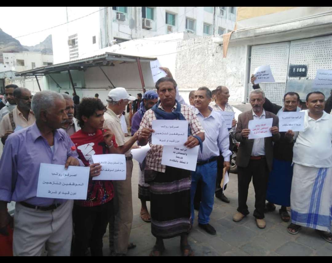 الوقفة الاحتجاجية للموظفين النازحين إلى مناطق الحكومة الشرعية.