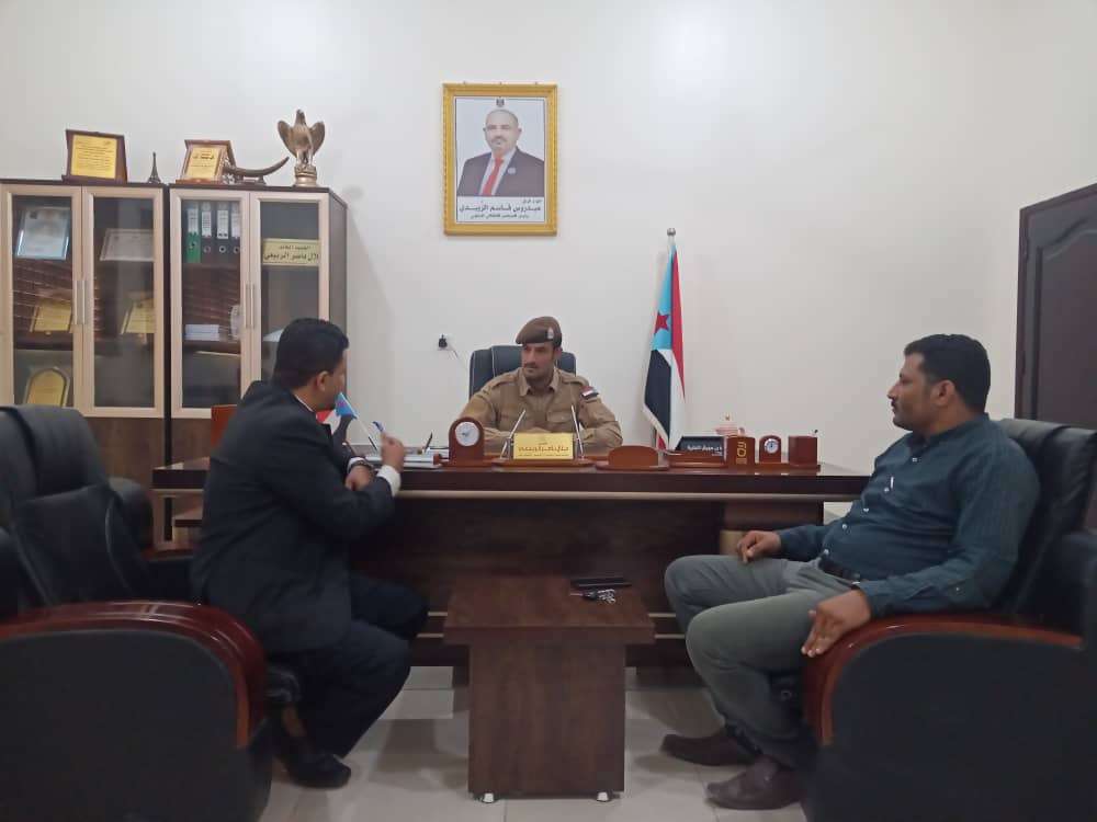 مدير عام مكتب الصناعة والتجارة يناقش مع قائد قوات الحزام الأمني تعزيز العمل المشترك بين الجانبين