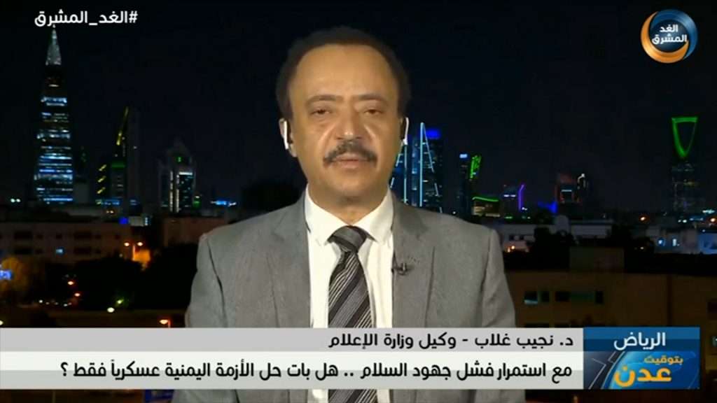 وأوضح غلاب إن جميع جهود السلام في اليمن فشلت لأن مليشيا الحوثي تستغل الهدن لبناء قواتها العسكرية وابتزاز الشعب اليمني”