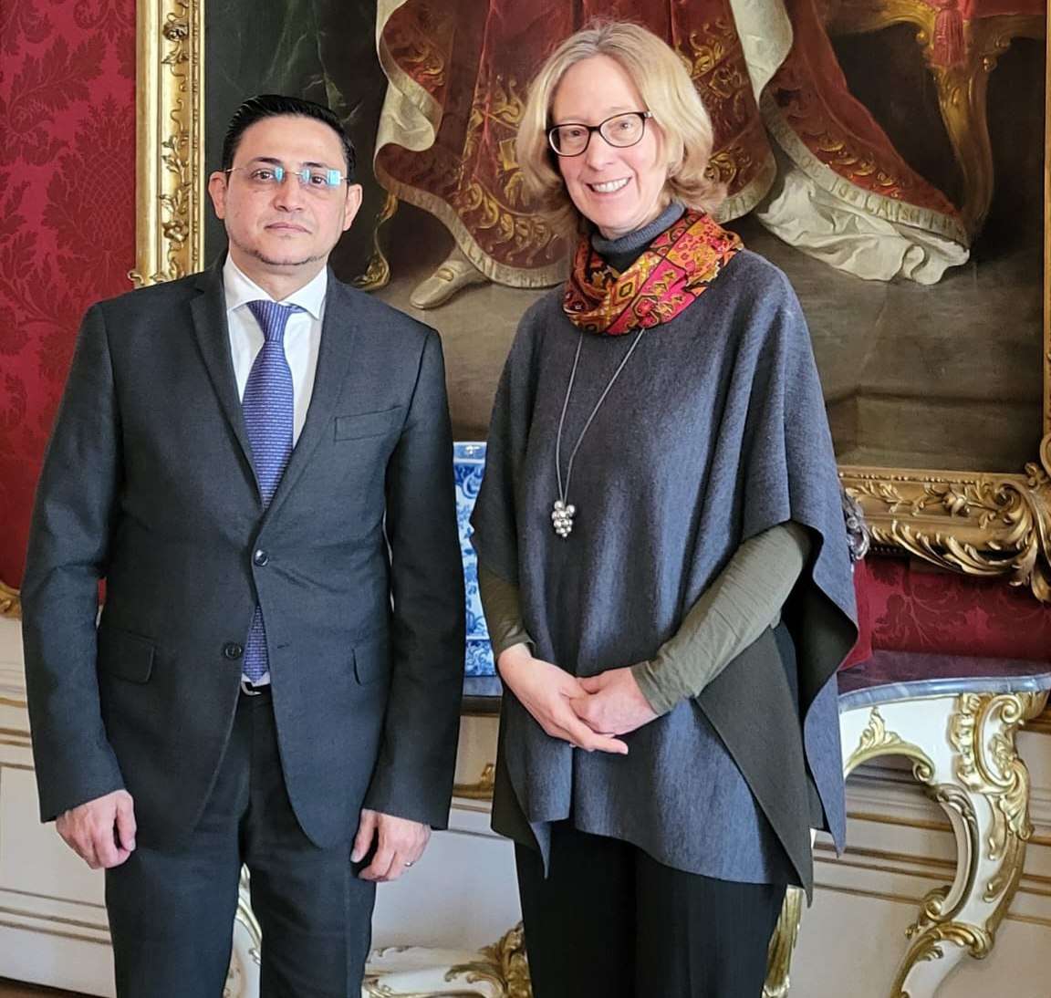 التقي سفير اليمن لدى النمسا هيثم شجاع الدين، اليوم، مستشارة الرئيس النمساوي للشؤون الدولية جيردا فوجل.