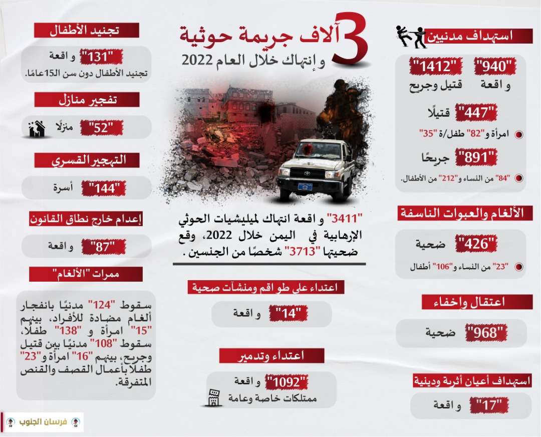 3آلاف جريمة وإنتهاك حوثية خلال العام 2022