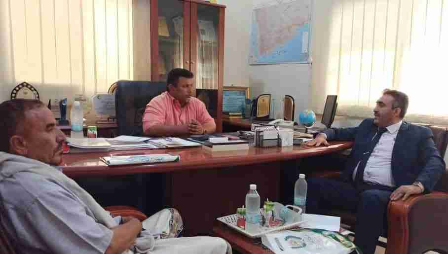 والتقى وكيل محافظة أبين خلال زيارته الأخ وسيم القباطي مدير المشاريع الصحية والأخ م. محفوظ عيسى مدير المشاريع الإنشائية