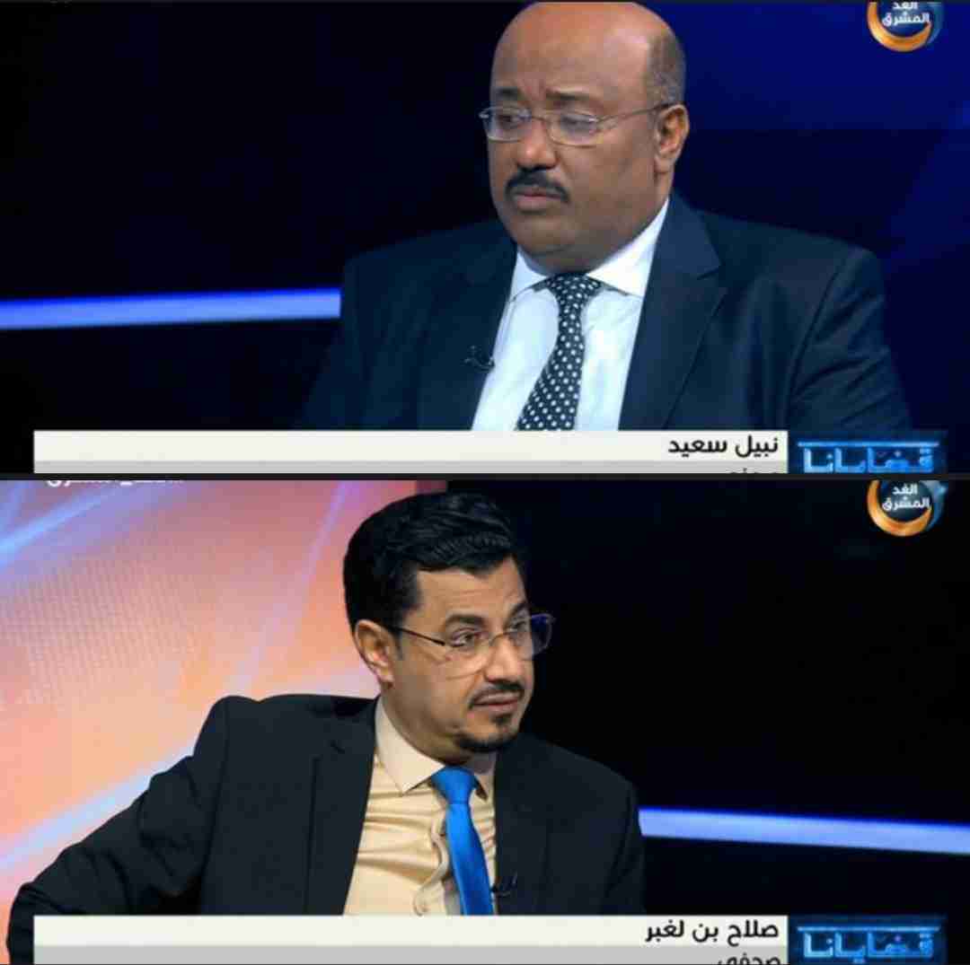 ومن جانبه قال الصحفي، صلاح بن لغبر اثناء مداخلته نترقب تطورات عسكرية قادمة في حضرموت إذا فشلت وساطة التحالف بإخراج قوات المنطقة العسكرية الأولى مشيراً إلى أنه من المتوقع تغيير رئيس الوزراء وأسماء أخرى مرشحة بدلا عنه”.