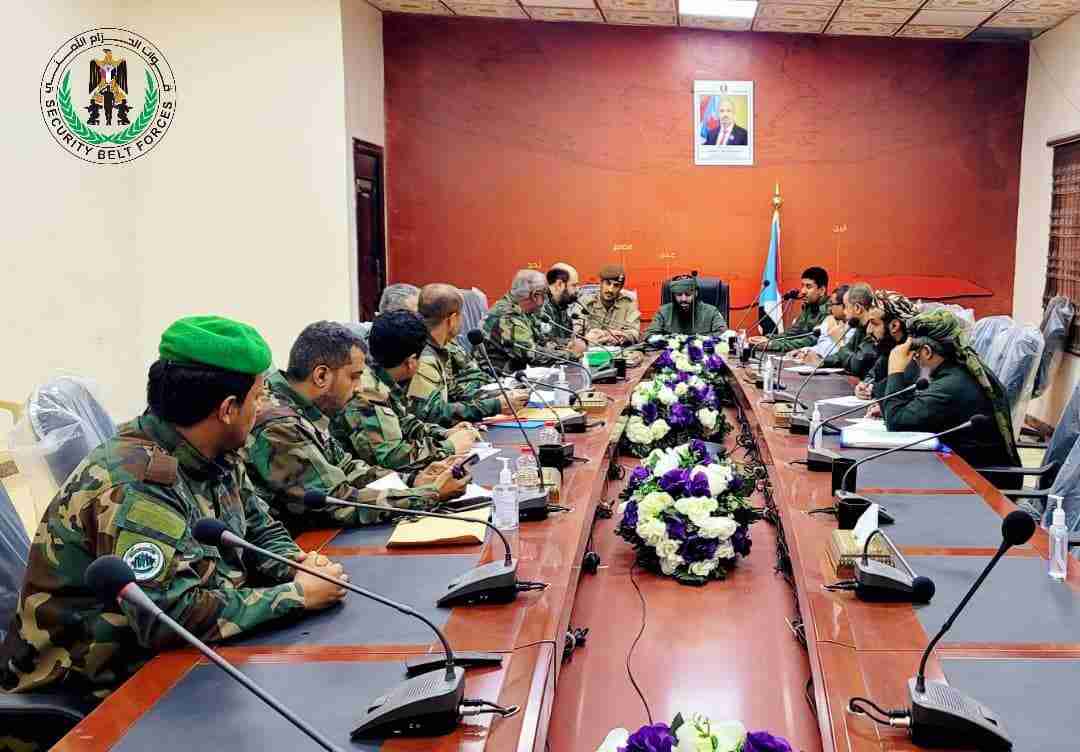 ترأس العميد محسن عبدالله الوالي القائد العام لقوات الحزام الأمني اليوم اجتماعاً بمدراء الادارات العامة بالقوات لمناقشة جملة من القضايا ذات الاهمية.