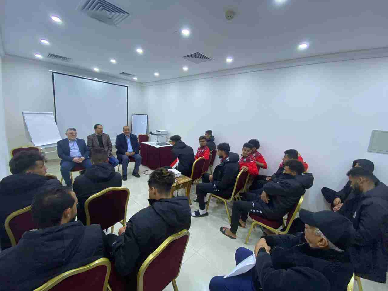 الوزير البكري يزور بعثة المنتخب الوطني بعد الخسارة من عُمان