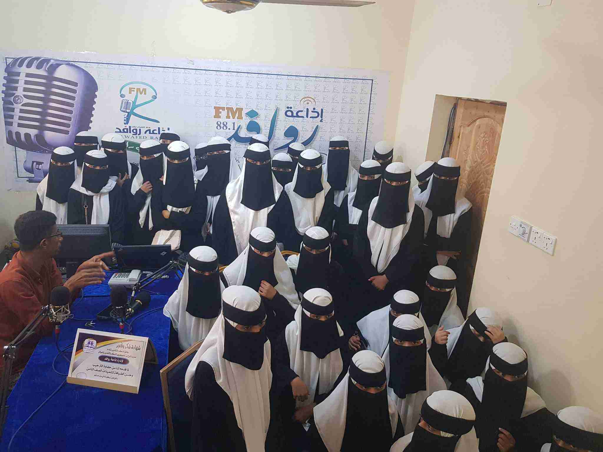 طالبات مدرسة الفقيد بن غانم في زيارة لإذاعة روافد FM بغيل باوزير