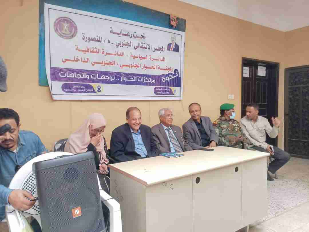 أقام المجلس الانتقالي بمديرية المنصورة في العاصمة عدن، صباح اليوم الأحد، ندوة نقاشية عن أهمية الحوار الجنوبي الجنوبي.