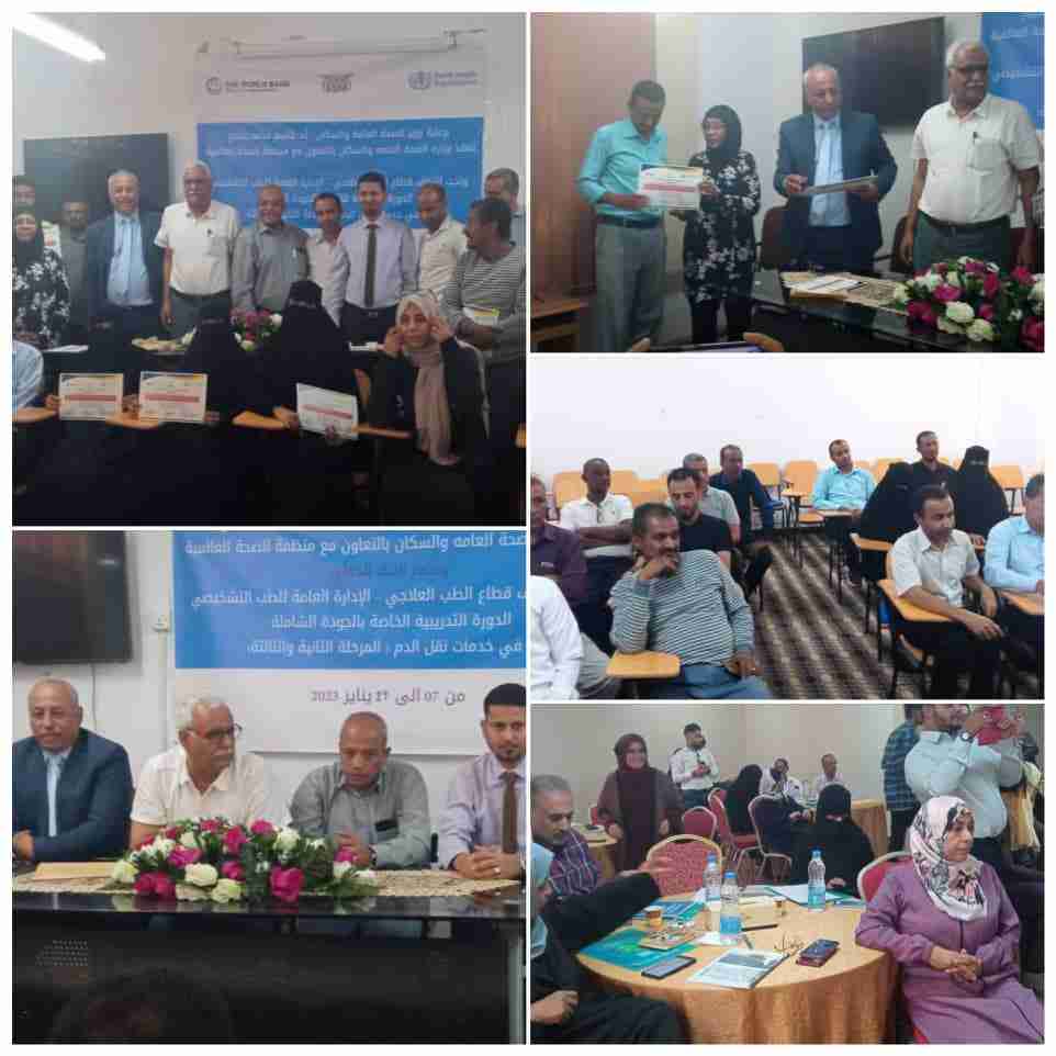 اختتم اليوم بالعاصمة عدن البرنامج التدريبي والتطبيقي الخاص بالجودة الشاملة في خدمات بنوك الدم والتي نظمها الادارة العامة للطب التشخيصي بالتعاون مع منظمة الصحة العالمية وبدعم من البنك الدولي.