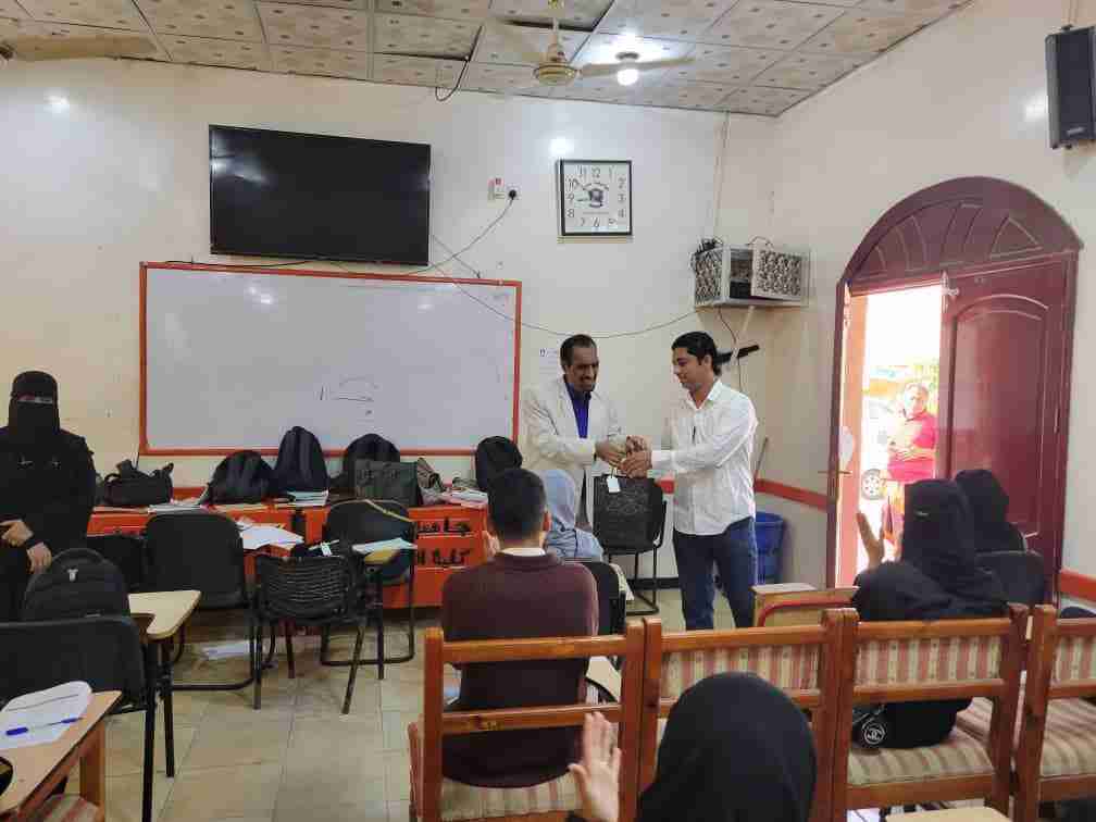 عميد كلية اللغات والترجمة بعدن يكرم المدرسين المتميزين في القاعات الدراسية أمام طلابهم
