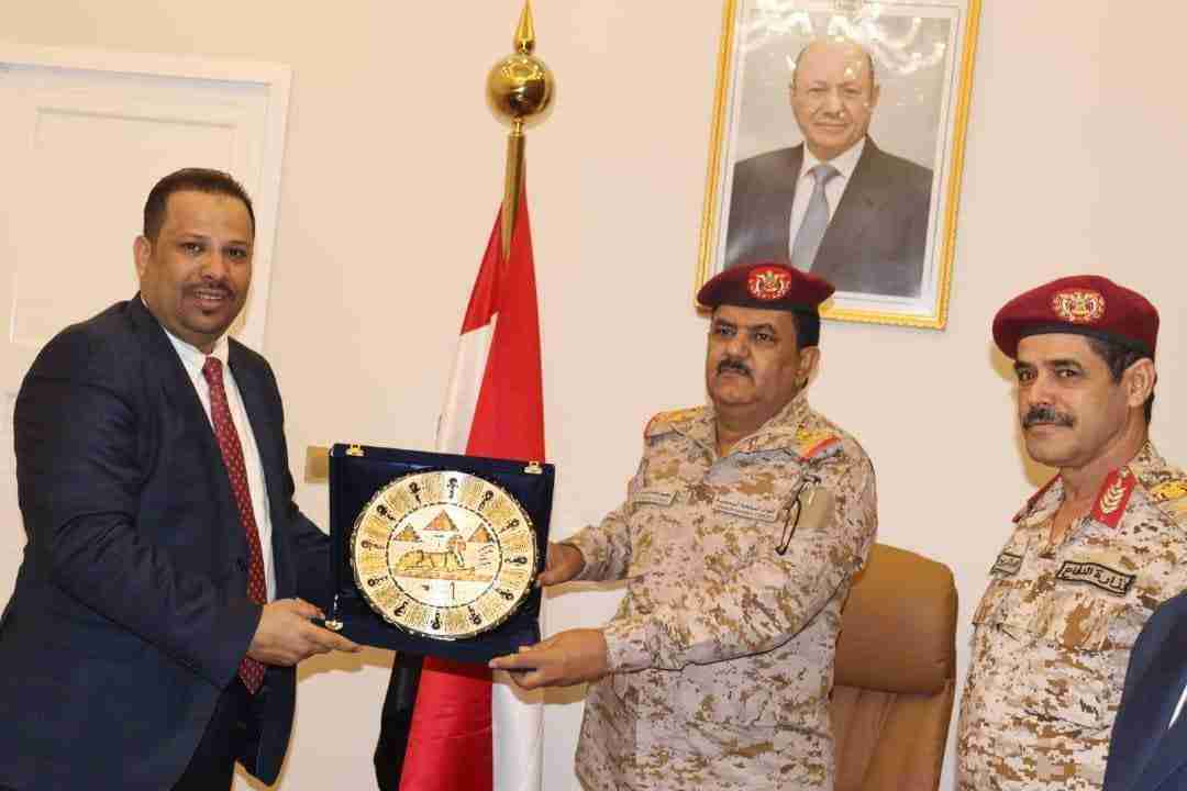 تسلم معالي وزير الدفاع الفريق الركن محسن محمد الداعري الداعري اليوم درع جهاز مشروعات الخدمة الوطنية بوزارة الدفاع المصرية المقدم للمؤسسة الاقتصادية اليمنية