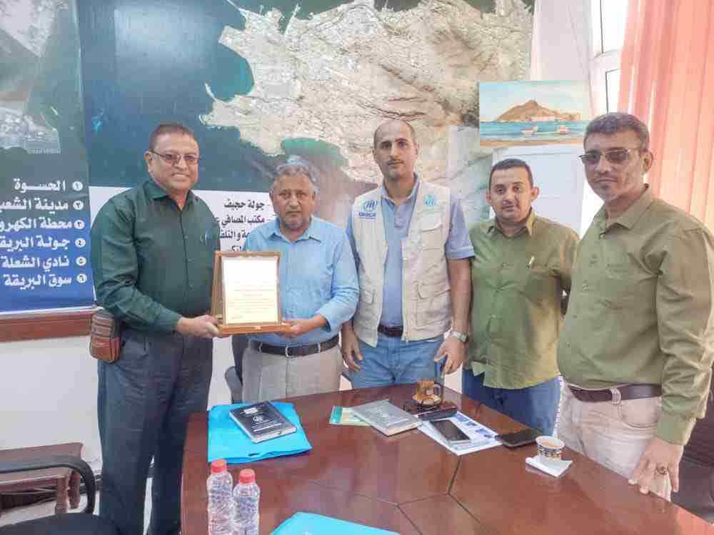 مدير المشروع الصحي للاجئين يكرم مدير صندوق النظافة في عدن