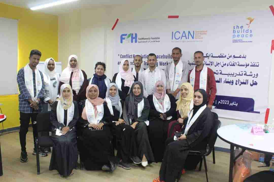 انطلقت اليوم في مدينة عدن فعاليات الدورة التدريبية حول "حل النزاعات والحوارات المجتمعية" التي تنظمها مؤسسة الغذاء من أجل الإنسانية برعاية منظمة ايكان.