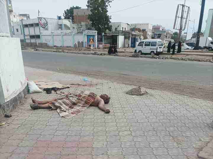 وظلت جثة الرجل مرمية لاكثر من ساعة قبل ان يتم نقلها من المكان.