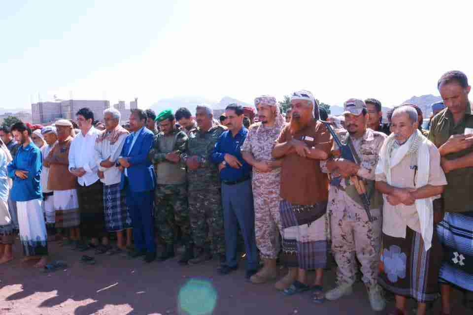 شارك في التشييع محافظ محافظة أبين اللواء أبو بكر حسين، و الاستاذ محمد الشقي رئيس القيادة المحلية للمجلس الانتقالي بمحافظة أبين، والعميد مختار النوبي قائد محوري أبين كرش, قائد اللواء الخامس أ – بدعم وإسناد، والعميد صالح السيد أركان القوات البرية, مدير أمن محافظة لحج,والعميد عبداللطيف السيد قائد الحزام الأمني بدلتا أبين ‘ والعميد عثمان حيدرة معوضه قائد اللواء 14 صاعقة، والعميد محمد منصور السعدي أركان محور أبين القتالي، والعميد قايد محمد مساعد مدير الأمن السياسي بالعاصمة عدن، والعميد عبدالسلام البيحاني رئيس عمليات القوات البرية, والعميد محمد قاسم عطوه رئيس عمليات محور أبين القتالي والقائد محمود عبدالكريم الردفاني ركن تسليح محور أبين القتالي والشيخ فضل عبدالله القطيبي مدير عام ردفان والعديد من القيادات السياسية والعسكرية والشخصيات الاجتماعية.