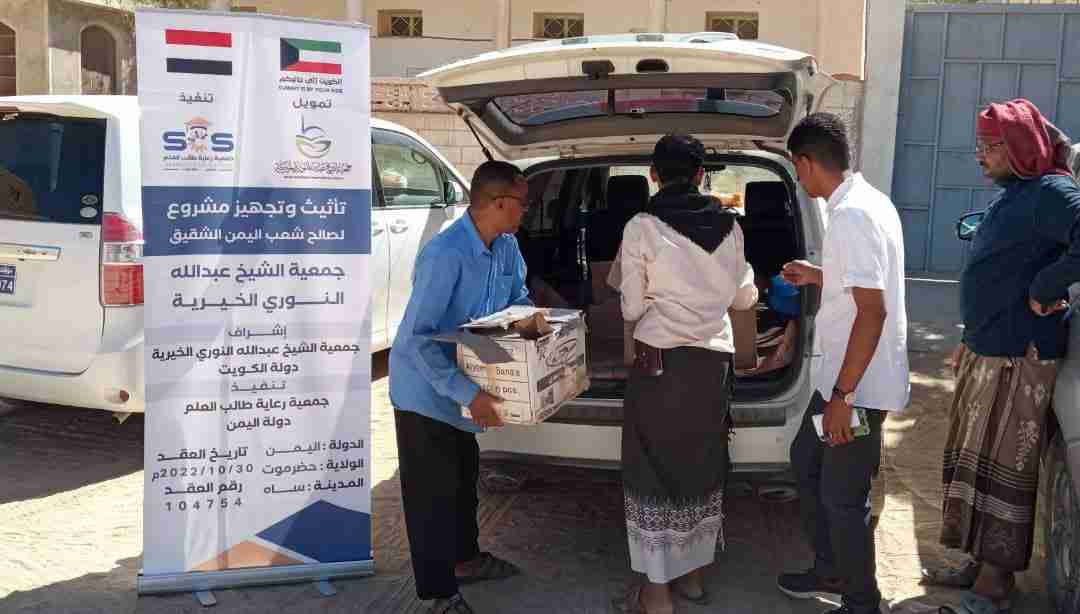 وخلال عملية التسليم نقل مدير مكتب الصحة والسكان بالمديرية الأخ سليمان محمد باغوزة تحيات وشكر المدير العام لمديرية ساه الشيخ "مبارك بن عبودان الجابري"، لجمعية الشيخ "عبدالله النوري الخيرية" بدولة الكويت لتدخلاتها الإنسانية في دعم قطاعي الصحة و التعليم بالمديرية.