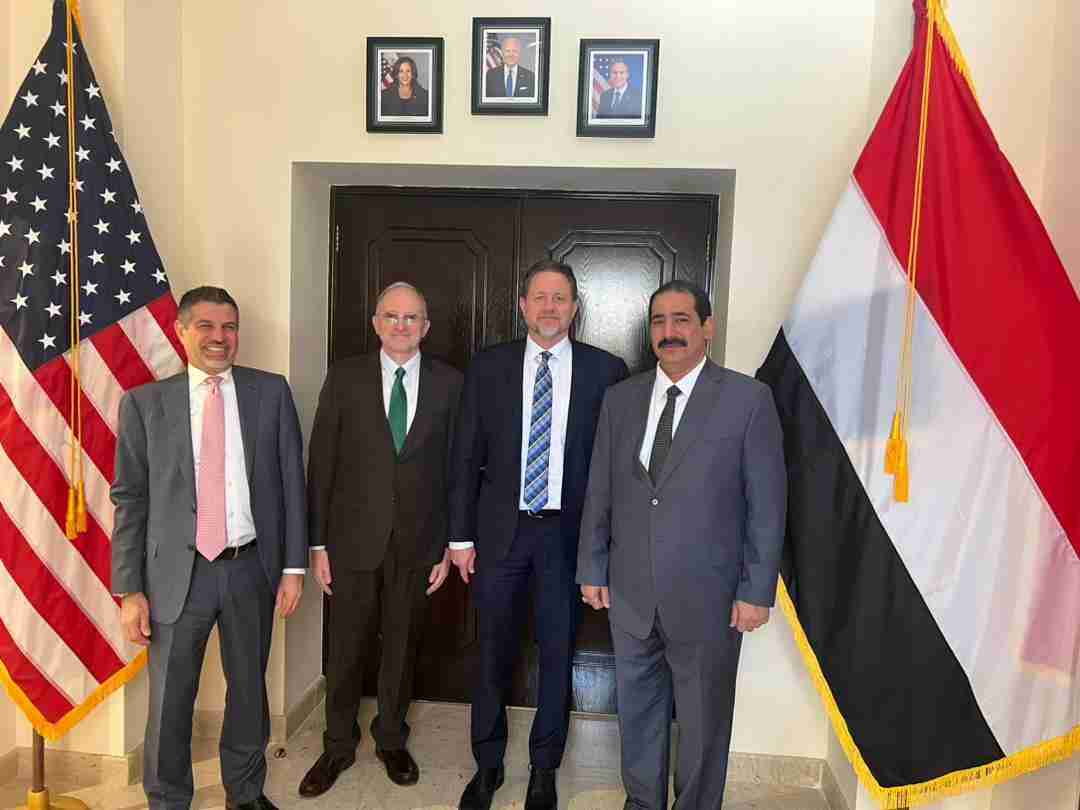 وخلال اللقاء ثمن وزير الداخلية جهود الولايات المتحدة الامريكية والتنسيق الأمني مع اليمن في مكافحة التنظيمات الإرهابية وحماية طريق الملاحة الدولية من خطر تهديد المليشيات الحوثية و تهريب الأسلحة والصواريخ التي تستخدمها المليشيات والتنظيمات الإرهابية لتهديد السلم المجتمعي واستهداف مؤسسات وموارد الدولة.