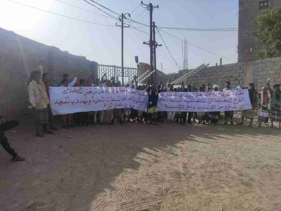نقابة عمال كهرباء ردفان تنظم وقفة احتجاجية