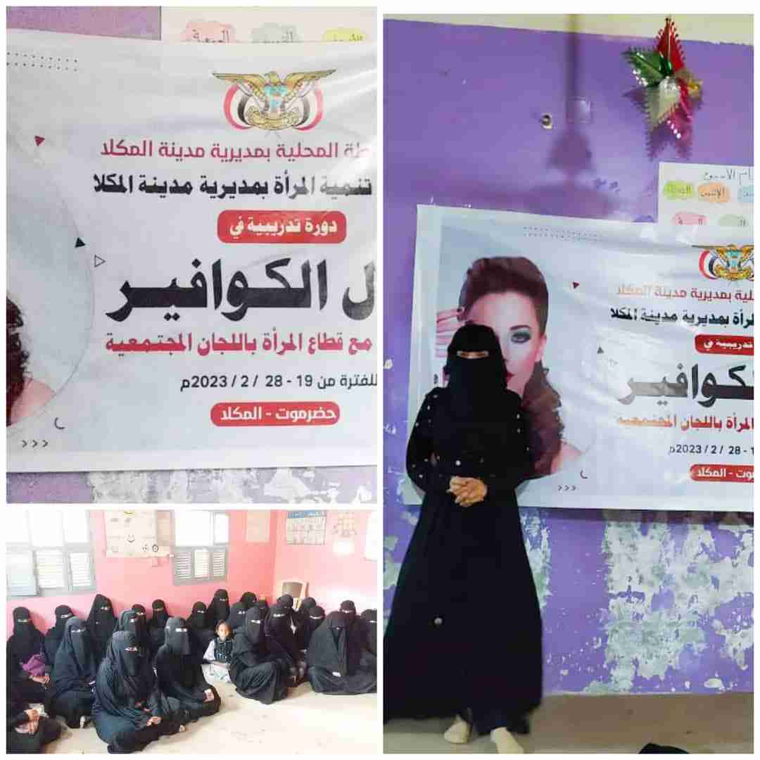 دشنت إدارة تنمية المرأة بمديرية مدينة المكلا، دورتي الخياطة والكوافير، بحي واحد مايو، بالتنسيق مع قطاع المرأة باللجان المجتمعية، برعاية السلطة المحلية بمديرية مدينة المكلا.