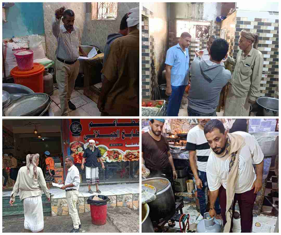 عدن .. مكتب الصناعة والتجارة في البريقة يواصل حملاته الرقابية على المطاعم