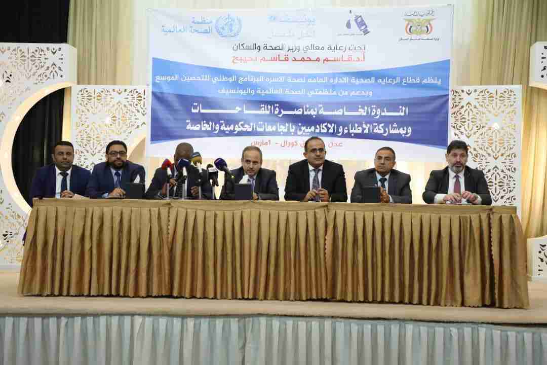 ناقشت ندوة نظمها قطاع الراعية الصحية الأولية بوزارة الصحة العامة والسكان بالعاصمة عدن، اليوم، بدعم من منظمتي الصحة العالمية واليونيسيف، أهمية اللقاحات الطبية ومأمونيتها وضرورة تظافر الجهود لإنجاح برامج التحصين.