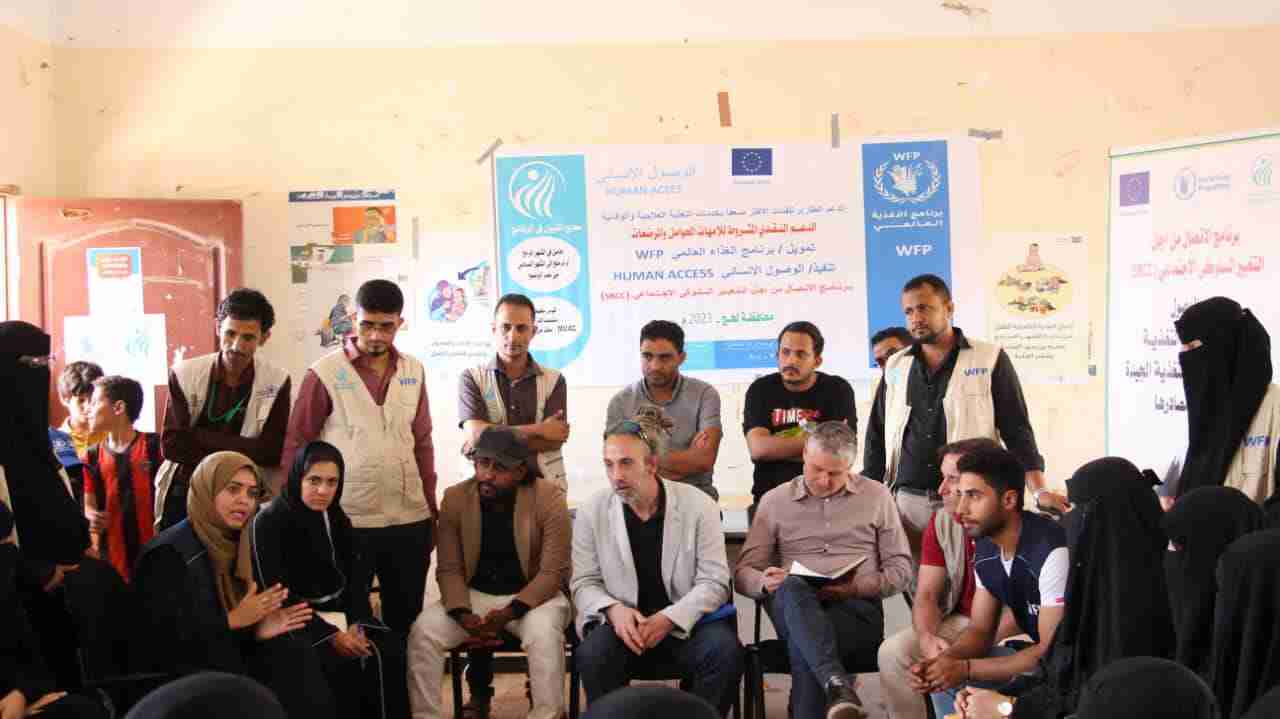 زار وفد من الأتحاد الأوروبي وبرنامج الغذاء العالمي مديرية ردفان في محافظة لحج بهدف متابعة وتقييم مشروع الدعم الطارئ للفتيات الأكثر ضعفا ضمن مشروع الدعم النقدي المشروط للأمهات الحوامل و المرضعات الذي يموله برنامج الغذاء العالمي "WFP" وتنفذه مؤسسة الوصول الإنساني.