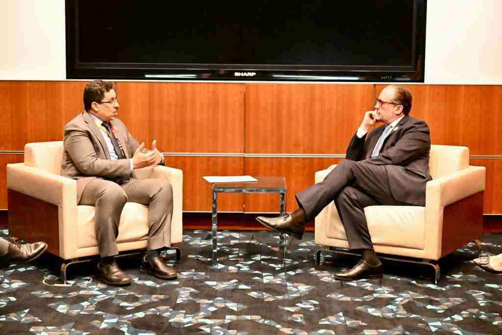 وتطرق الجانبان لقضية خزان النفط المتهالك صافر وعبرا عن قلقهما من المخاطر البيئية والتداعيات الكارثية التي يشكلها الخزان على اليمن والمنطقة والملاحة الدولية.