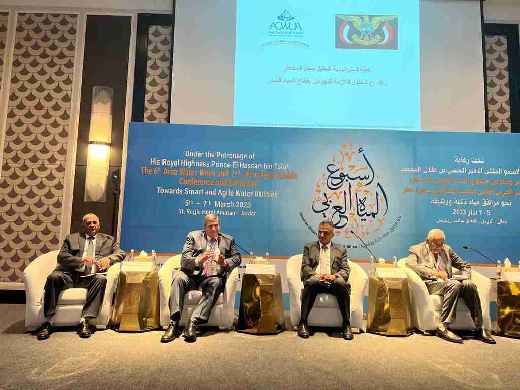 ولفت الوزير الشرجبي خلال الجلسة النقاشية التي رأسها بعنوان "تمويل المياه والمناخ في اليمن: التحديات والفرص المحتملة" ضمن فعاليات أسبوع المياه العربي السادس المنعقد في العاصمة الأردنية عمّان، إلى أن التمويلات الموجهة إلى قطاع المياه ما تزال دون المستوى المأمول.