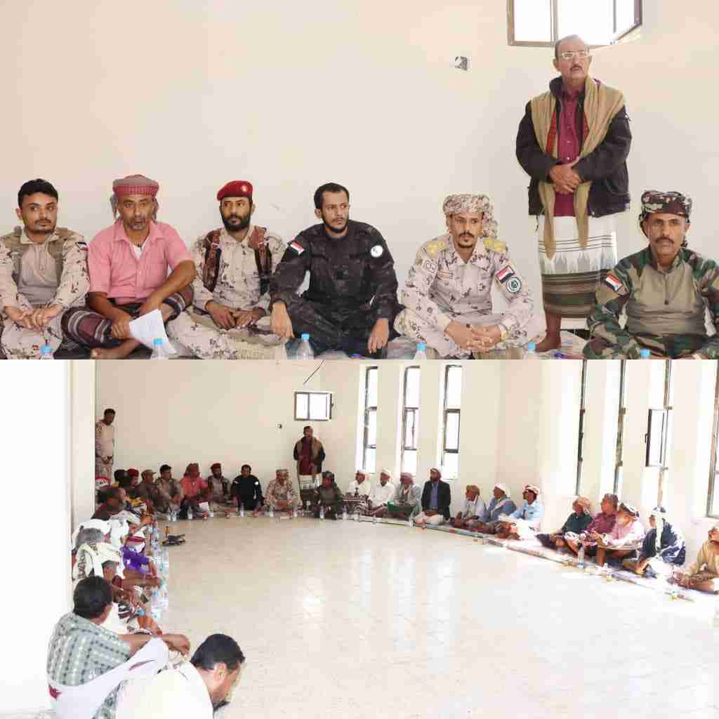 وكان هذا اللقاء إستجابة لدعوة العميد اليافعي لتدارس الأوضاع الأمنية بالمديرية والخروج بحلول من شأنها تؤدي إلى تثبيت الأمن والاستقرار بالمديرية والقضاء على الجماعات الإرهابية المتطرفة واتخاذ موقف موحد من الجهات الأمنية بمساعدة المشائخ والأعيان والأهالي بالمديرية من الفكر المتطرف والقضاء على الإرهاب ومن يسانده أو يعاونه.