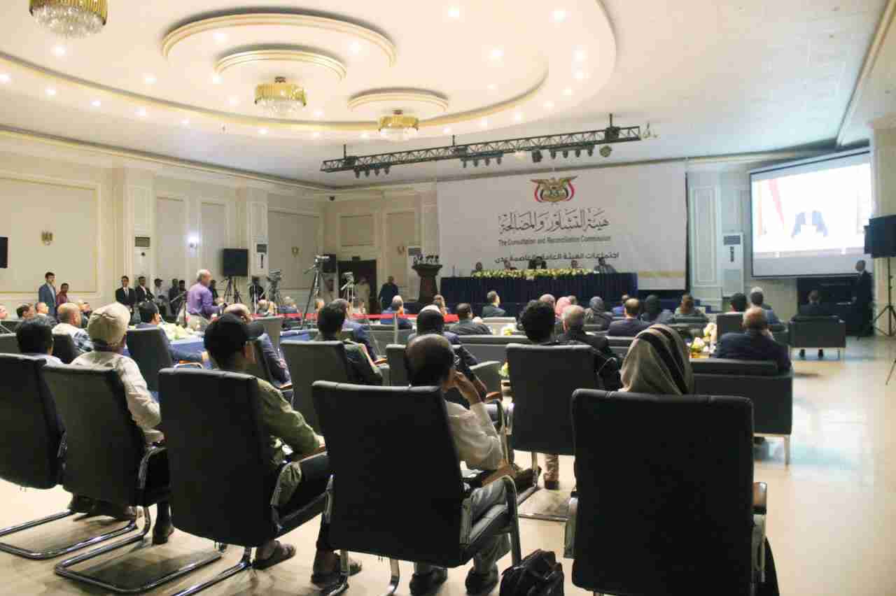 وكانت هناك كلمتان مسجلتان لرئيس مجلس القيادة الرئاسي الدكتور رشاد العليمي، ورئيس الحكومة الدكتور معين عبدالملك، أكدا من خلالهما على دعم ومساندة هيئة التشاور والمصالحة بما يسهم في دعم السلام والتوافق والعمل معا من أجل دحر مليشيات الحوثي الانقلابية واستعادة الدولة.