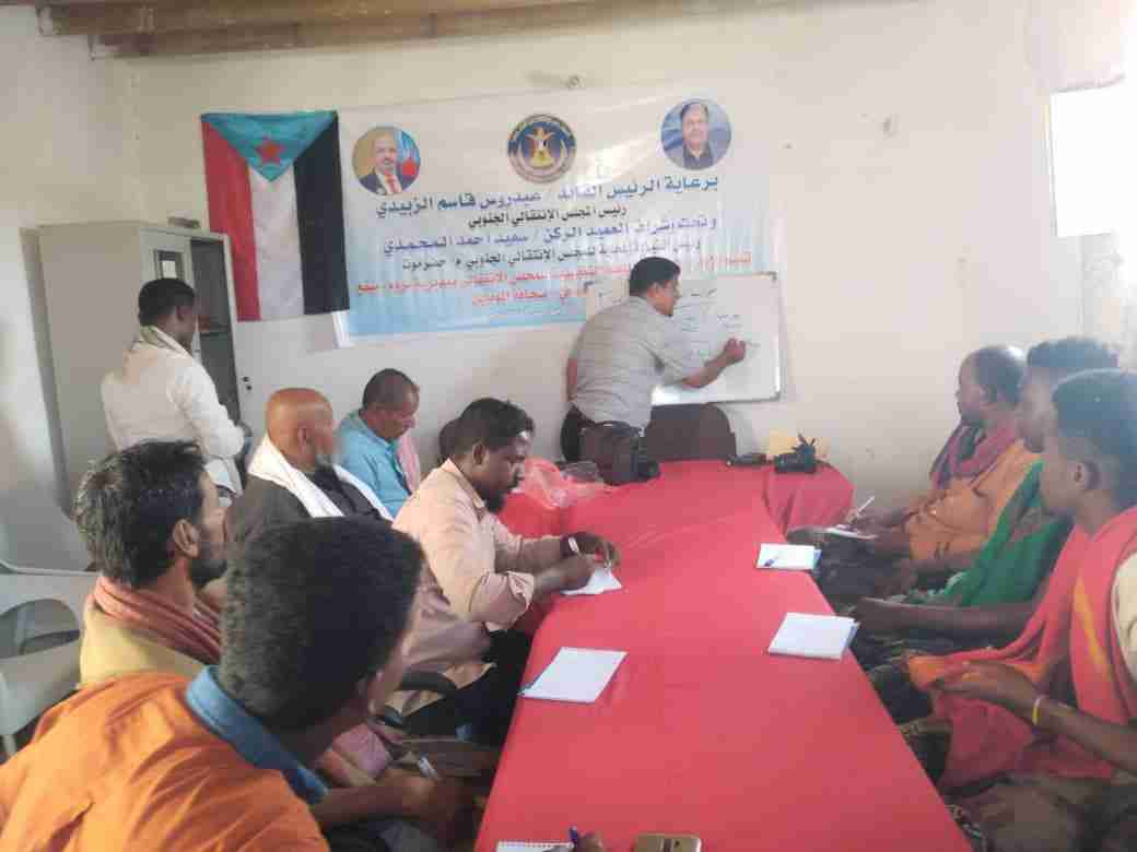 الجنوبي بالمحافظة / عمر سليمان باقروان ومدير الإدارة المالية محمد باسبعان وعوض بوريسه مدير الإدارة الجماهيرية، وعدد من اعضاء الهيئة التنفيذية للقيادة المحلية للمجلس الانتقالي الجنوبي بالمديرية.
