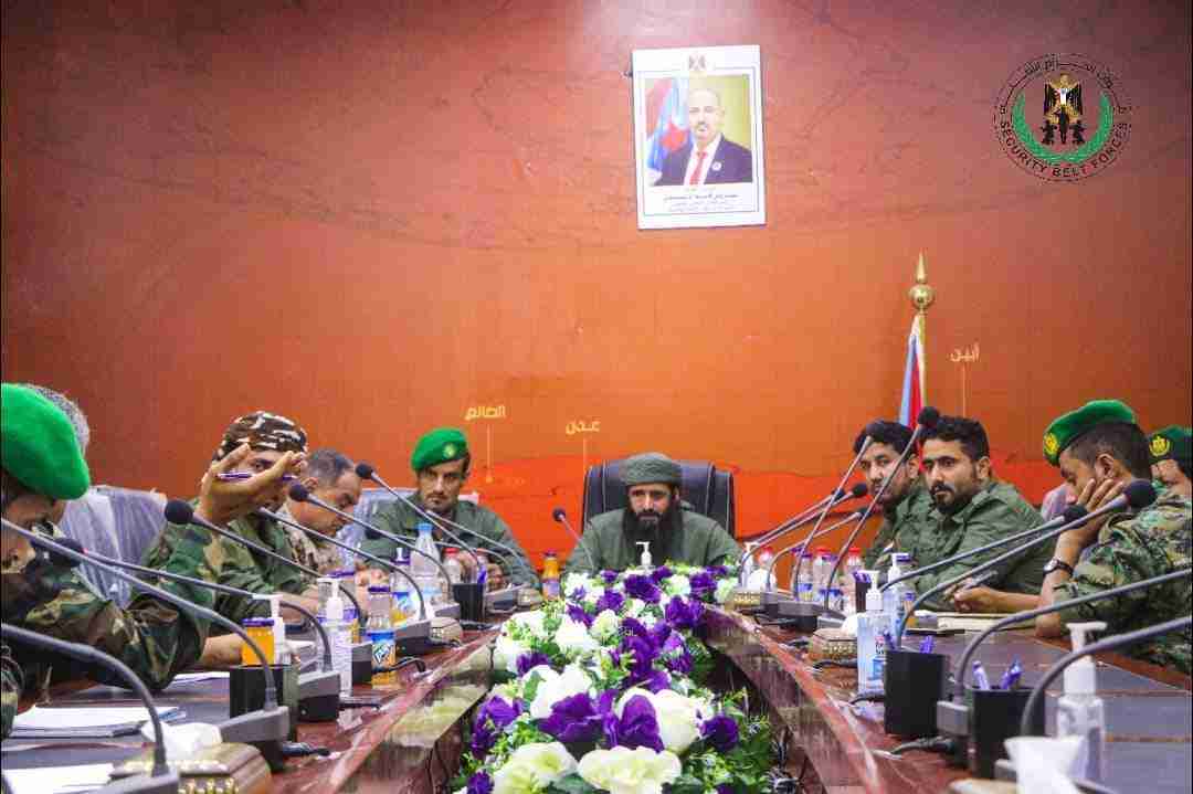 العميد الوالي يترأس اجتماعاً بقادة الأحزمة الأمنية في مقر القيادة العامة بالعاصمة عدن