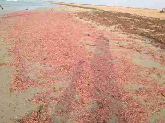 نفقت كميات كبيرة من الروبيان على شاطئ بحر الريدة الشرقية في محافظة حضرموت صباح اليوم الأربعاء، دون معرفة الأسباب.