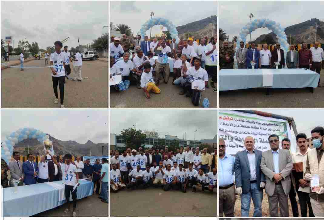 كرم وزير المياه والبيئة ومعه وكيل أول محافظة عدن محمد نصر الشاذلي ووكيل وزارة الشباب والرياضة خالد الخليفي وفيصل الثعلبي القائم باعمال رئيس الهيئة العامة لحماية البيئة ومدير مؤسسة المياه محمد باخبيرة ،وعوض مبجر أمين محلي صيرة صباح اليوم الفائزين بسباق المارثون الرياضي الذي نظمته مؤسسة المياه والصرف الصحي بالعاصمة عدن والذي شارك فيه حوالي50 متسابقا، انطلاقا من أمام مبنى مؤسسة المياه بمديرية صيرة وحتى جولة العاقل بمديرية خور مكسر.