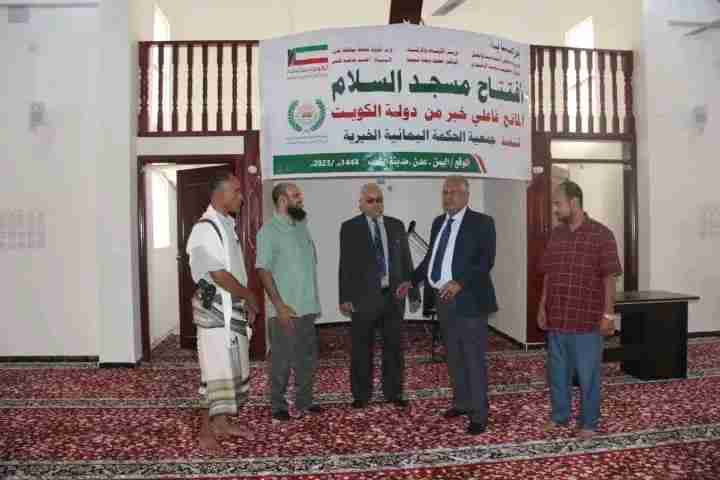 برعاية وزير الشؤون الاجتماعية والعمل الدكتور/ محمد سعيد الزعوري, ووزير الأوقاف والإرشاد الشيخ/ محمد عيضة شبيبة، ووزير الدولة محافظ محافظة عدن الأستاذ/ أحمد حامد لملس ، افتتحت جمعية الحكمة اليمانية الخيرية صباح أمس الخميس الموافق 16/3/2023م بمدينة الشعب محافظة عدن مشروعي البيت الكويتي الطلابي، ومسجد السلام بدعم وتمويل من بيت الزكاة الكويتي وفاعلي خير..