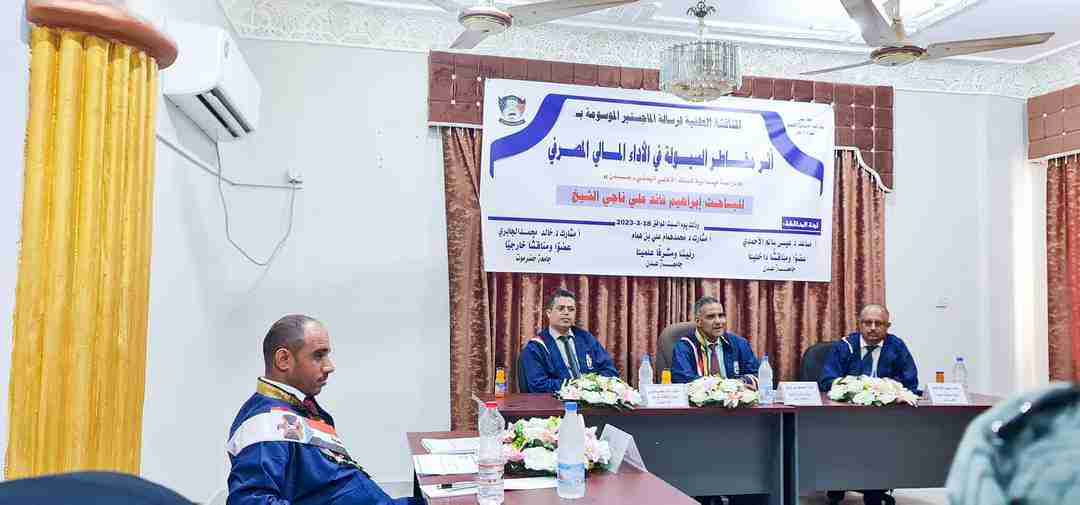 وقدم الباحث إبراهيم قائد رسالته خلال المناقشة العلنية التي جرت اليوم، أمام لجنة تكونت من الأستاذ مساعد دكتور محمد همام علي بن همام، رئيسا ومشرفا علميا، والأستاذ مساعد دكتور عيسى سالم الأحمدي عضوا ومناقشا داخليا، والأستاذ مشارك دكتور خالد محمد الجابري من جامعة حضرموت عضواً ومناقشا خارجيا، محددا مخاطر السيولة في الأداء المصرفي، والاجراءات العملية والعلمية التي من شأنها أن تحد من تلك المخاطر، وتوفر أداءً ماليا فعالا في المؤسسات والشركات المالية.