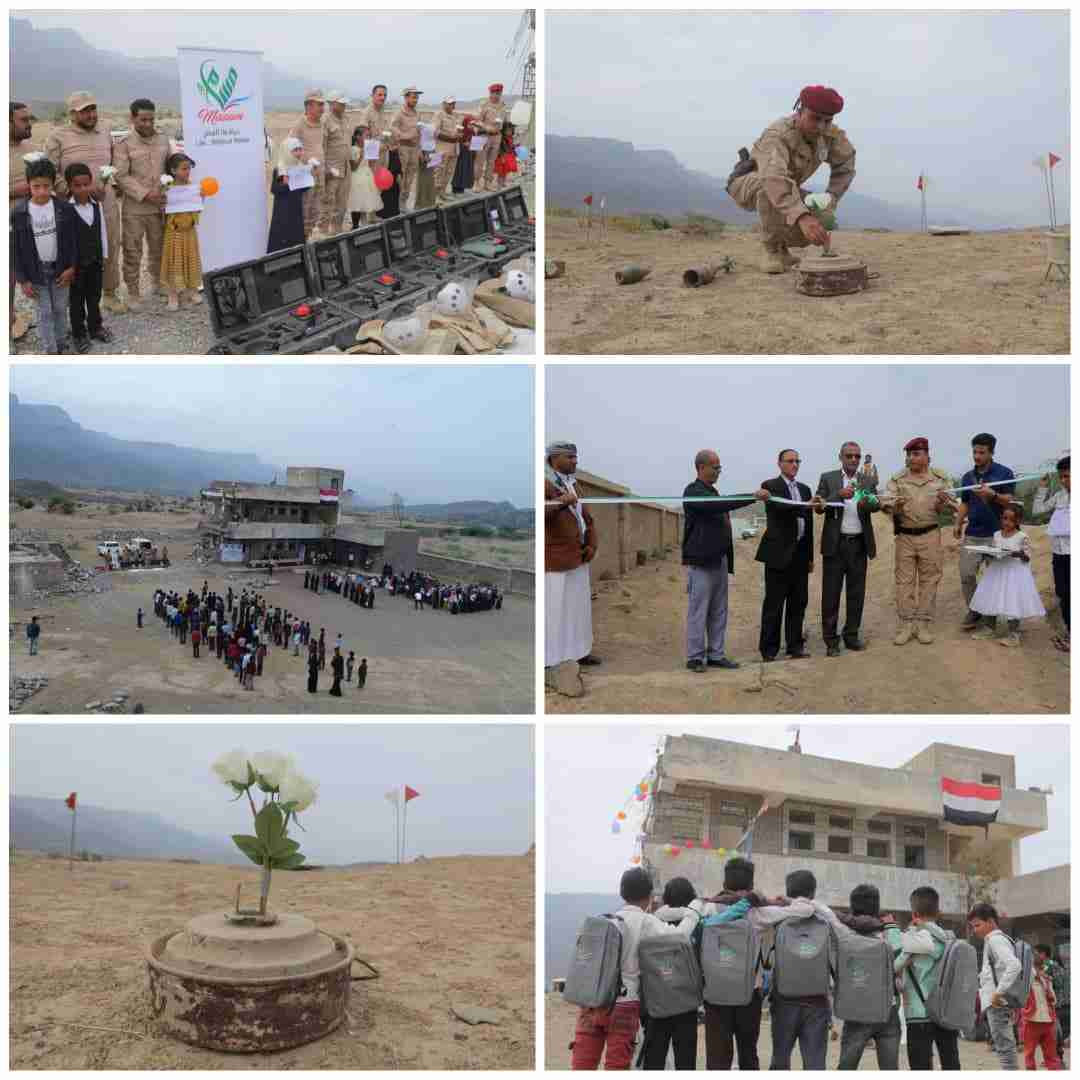افتتح مشروع "مسام" لتطهير الأراضي اليمنية من الألغام اليوم الأحد مدرسة "الشعب عكاد" الواقعة بمديرية جبل حبشي بعد تطهيرها من الألغام والعبوات الناسفة وتأمينها بشكل كامل .