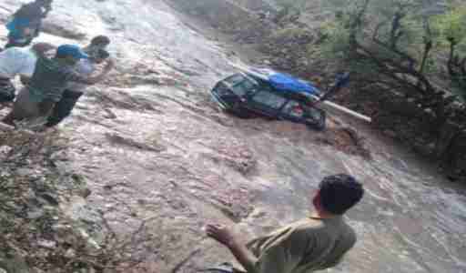 وقالت مصادر محلية إن سيول الأمطار حاصرت سيارة صالون مليئة بالركاب في سائلة القبيطة وادي السحر.