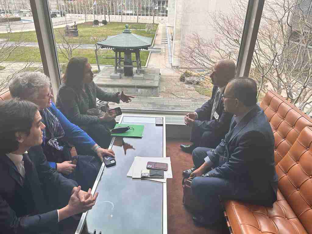 وزير المياه والبيئة المهندس توفيق الشرجبي يلتقي مع وكيلة الأمين العام للامم المتحدة والمدير المعاون للبرنامج الانمائي أوشا موناري وذلك على هامش اعمال مؤتمر الامم المتحدة للمياه في نيويورك.
