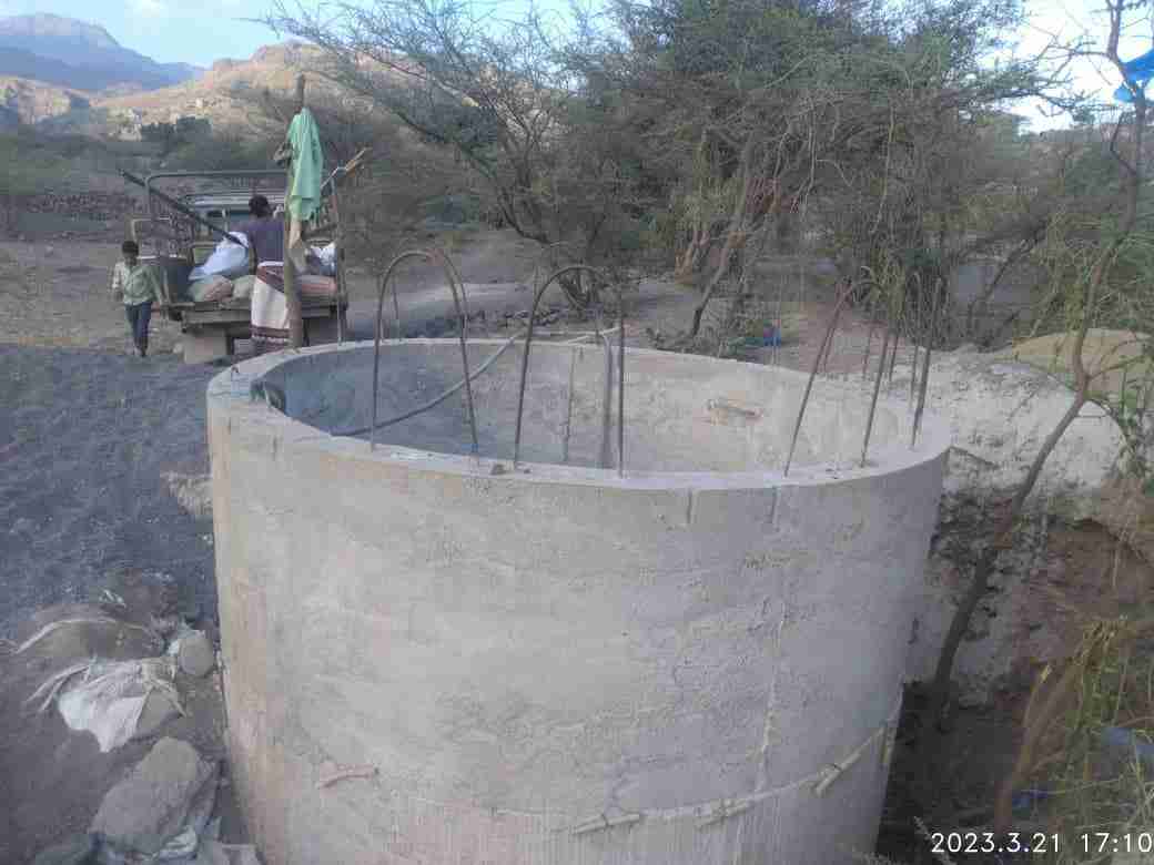 حيث في الوقت الحالي والأيام المتبقية من شهر رمضان سيتم ضخ المياه من البئر لخزان بلاستيك سعة خمسة ألف لتر للشرب لبعض الأسر القريبة من البئر وستبدأعمال التغزير والتعميق للبئر بعد شهر رمضان.