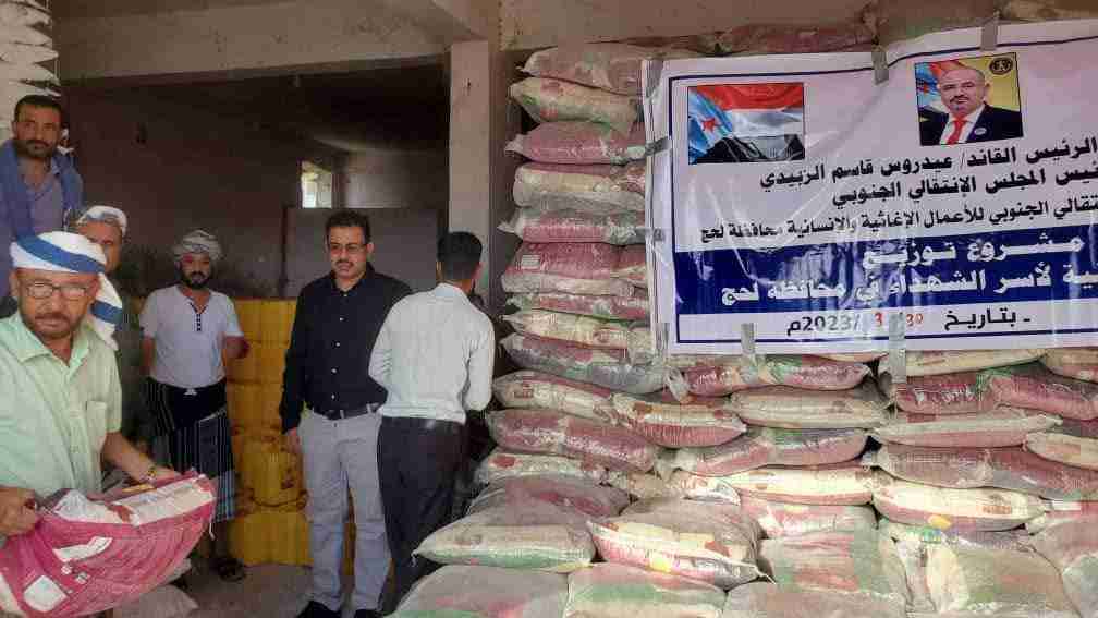 انتقالي لحج يدشن توزيع السلال الغذائية على أسر الشهداء
