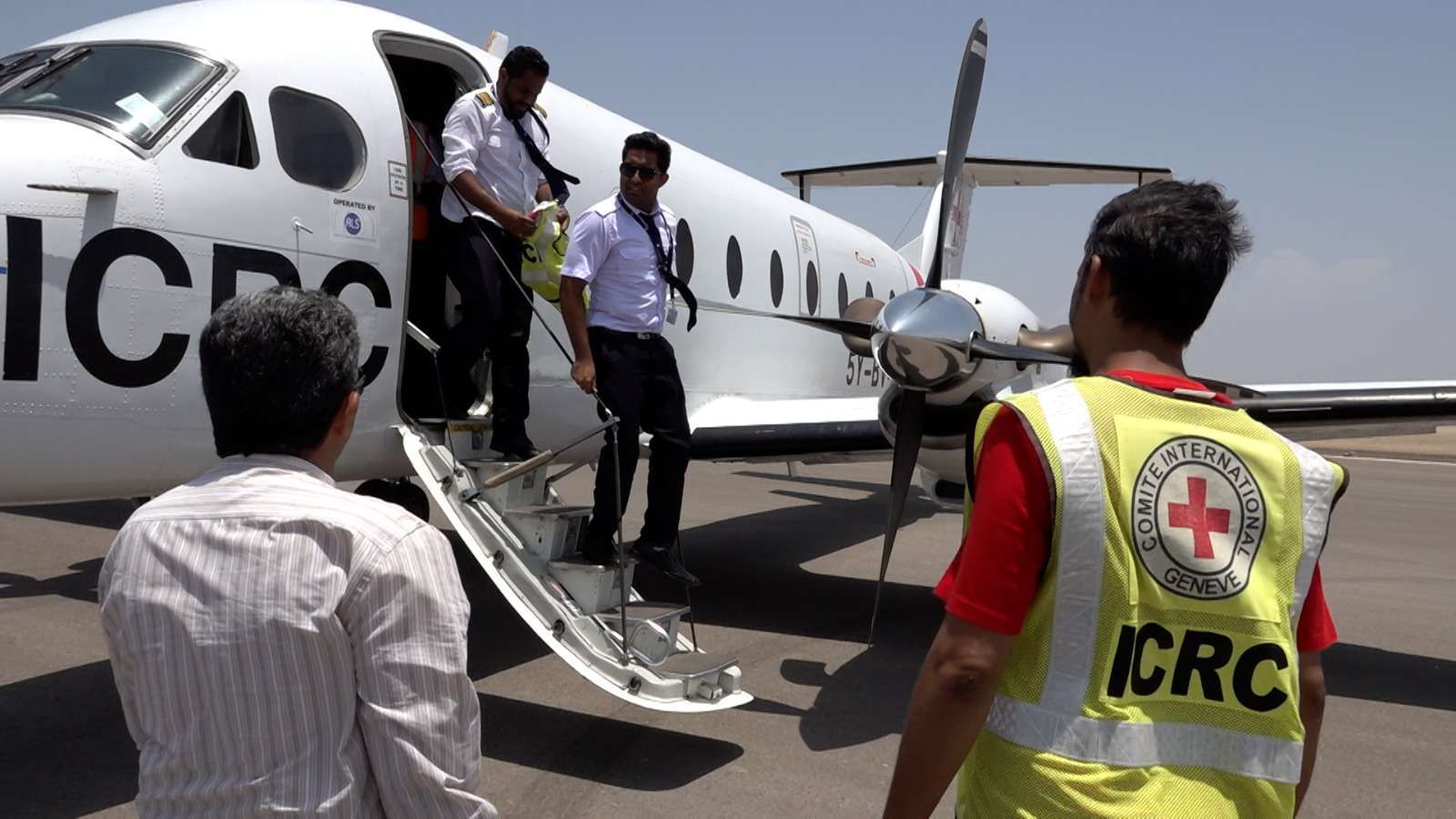 استقبل مطار المخا الدولي، ظهر الاحد طائرة تابعة للصليب الأحمر الدولي.