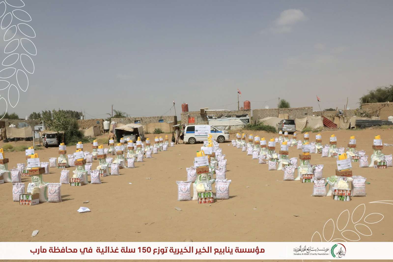 نفذت مؤسسة ينابيع الخير الخيرية مشروع توزيع 150 سلة غذائية يستفيد منها أكثر من 1,050 فرد من النازحين والأسر الفقيرة في محافظة مأرب، ويأتي هذا المشروع بتمويل كريم من فاعل خير من دولة الكويت .